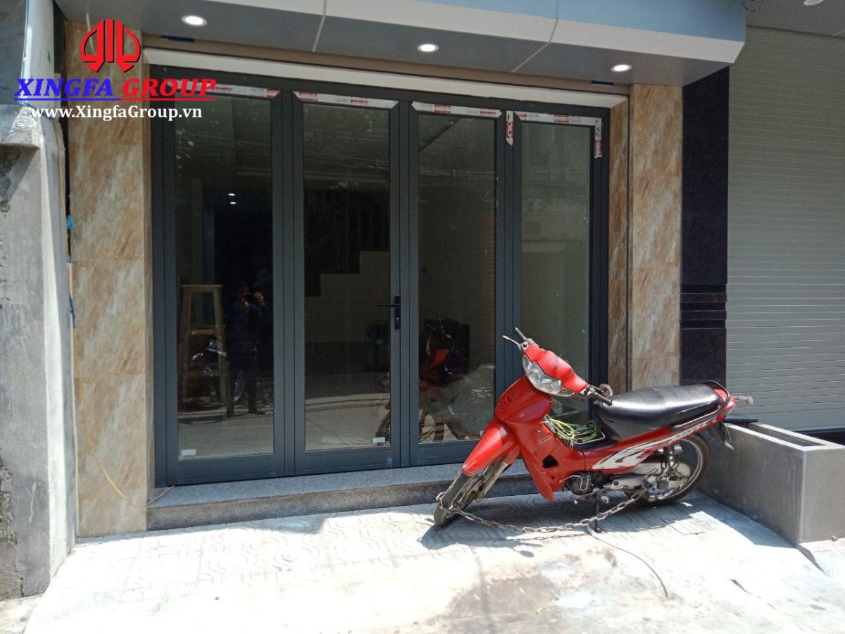 Bộ cửa chính nhôm Xingfa mở quay 4 cánh màu ghi