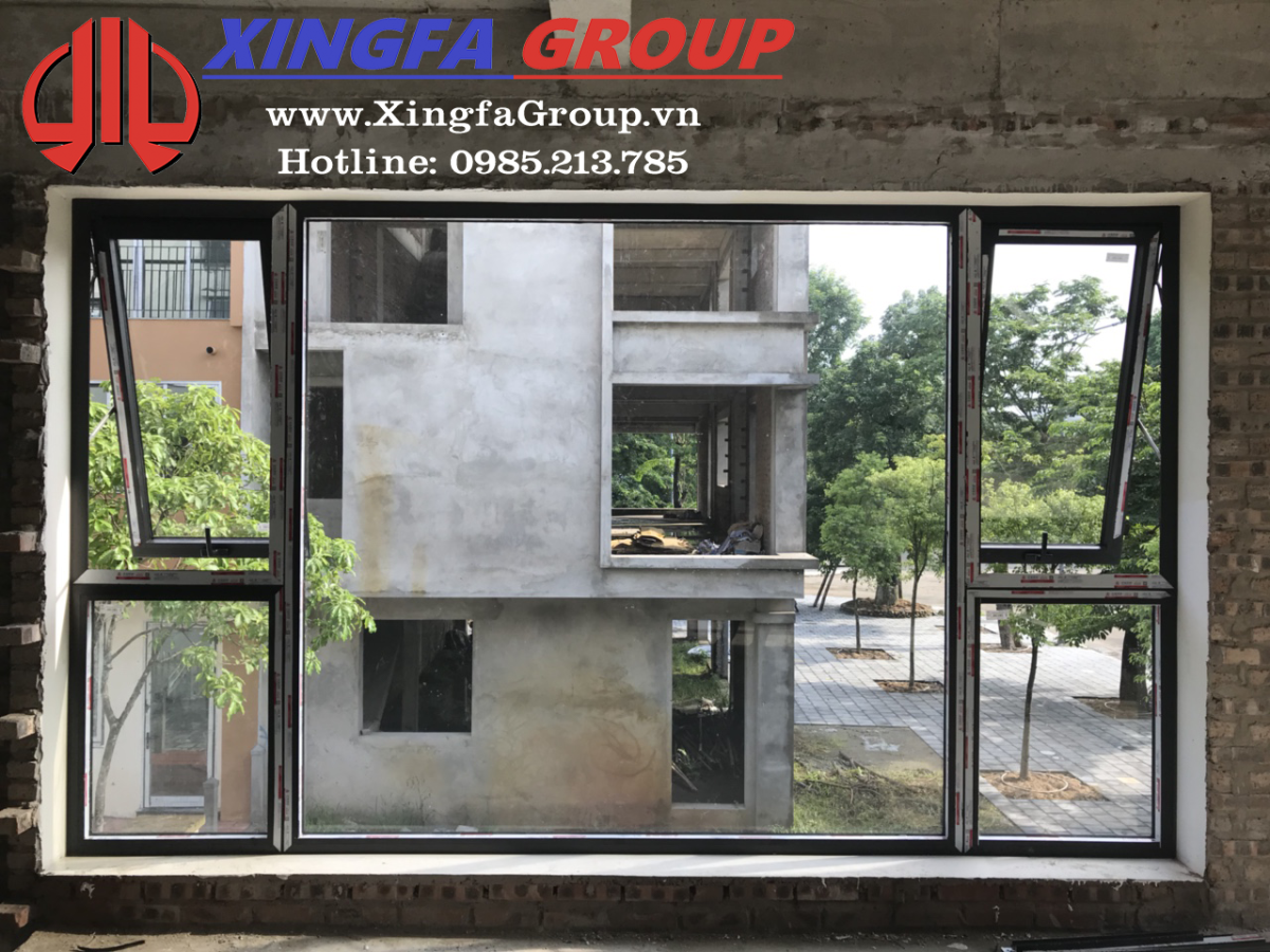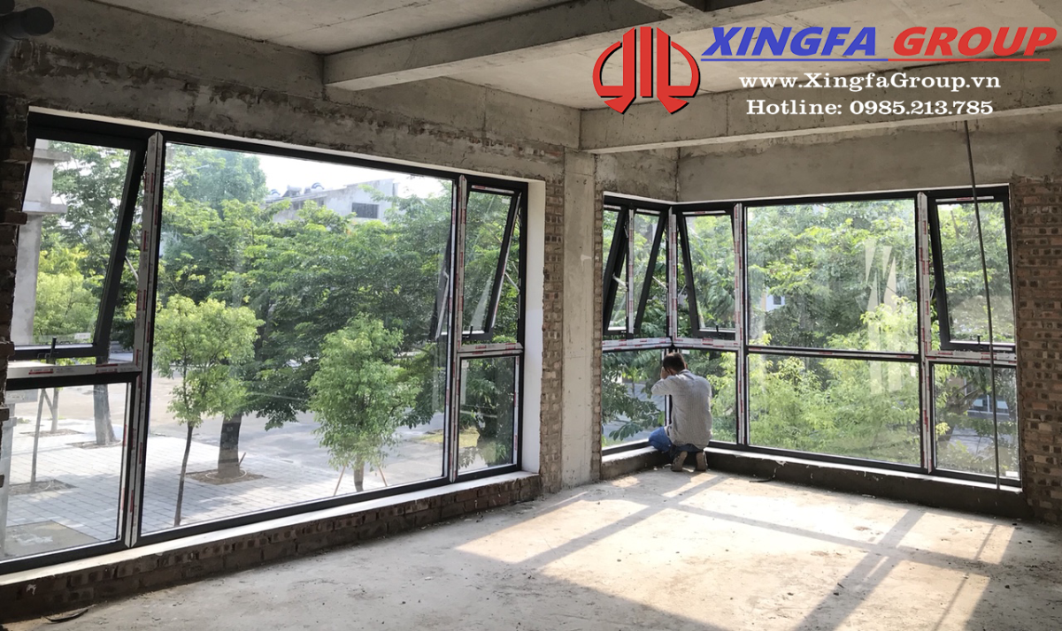 Mẫu cửa sổ mở hất và vách ngăn kính cố định nhôm Xingfa hệ 55 dầy 1.44mm