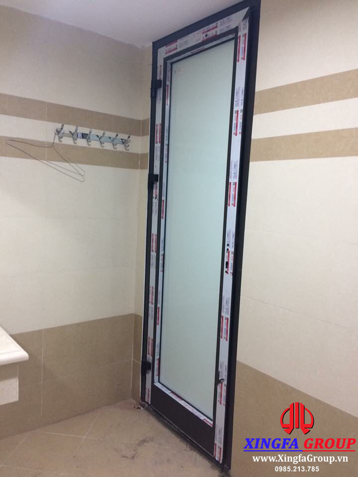 Cửa đi nhà vệ sinh sử dụng kính dán an toàn màu trắng sữa