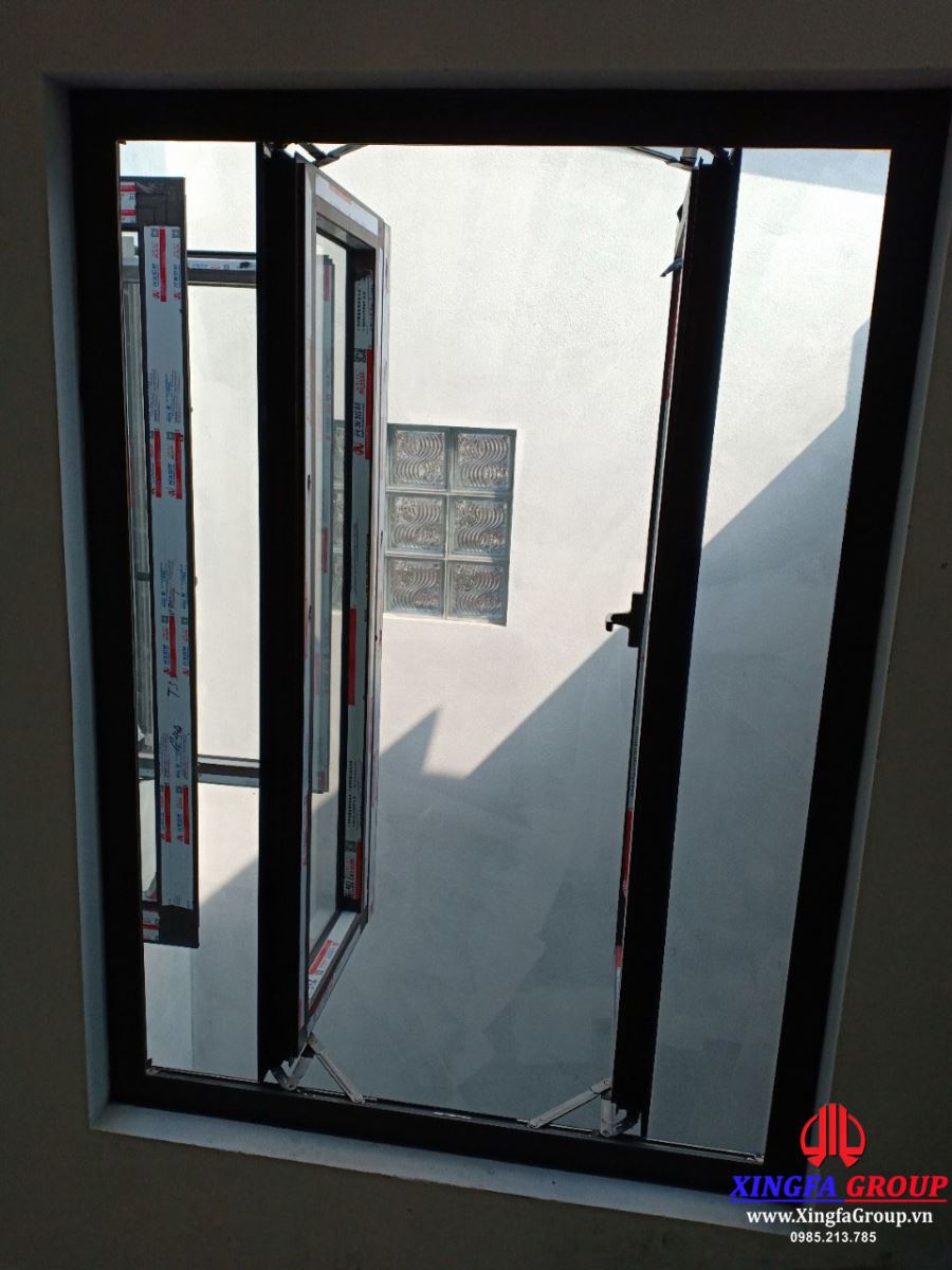 Cửa sổ mở quay 2 cánh nhôm Xingfa, loại cửa chủ yếu ở nhà anh Trường