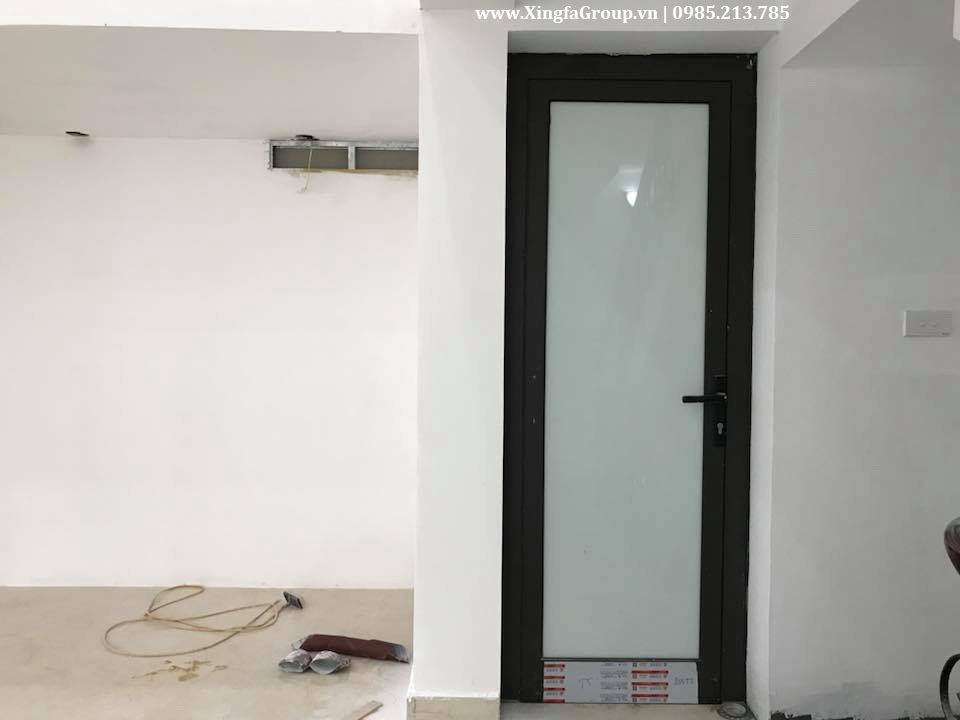 Các bộ cửa đi thông phòng và cửa nhà tắm wc đều sử dụng chung mẫu thanh profile nhôm Xingfa hệ 55 dày 2.0mm mở quay 1 cánh dùng kính trắng và kính mở phun sữa mang lại sự chắc chắn và chống nước ngấm ô xi hóa trong suốt quá trình sử dụng lâu dài về sau.