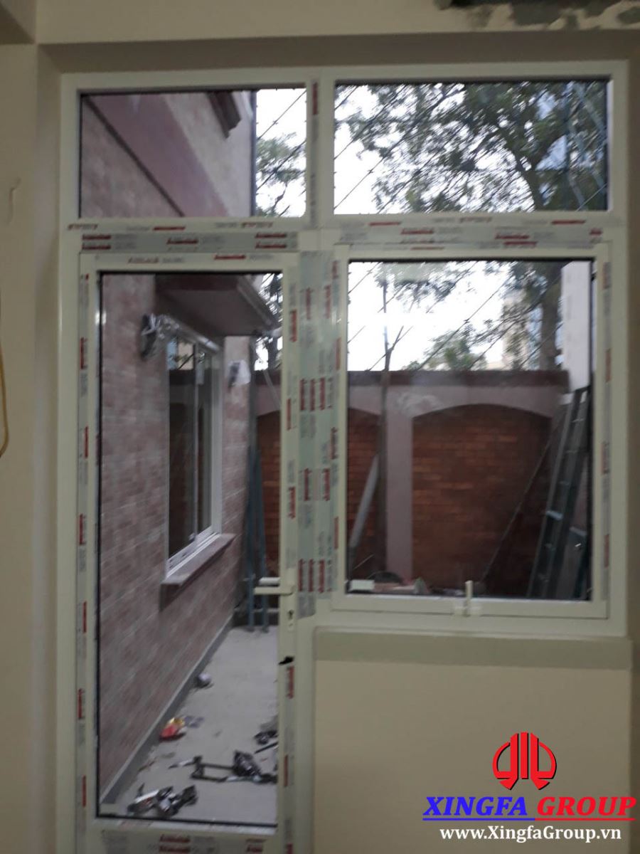 Bộ cửa đi mở quay kết hợp với cửa sổ mở hất nhôm Xingfa ra sân sau