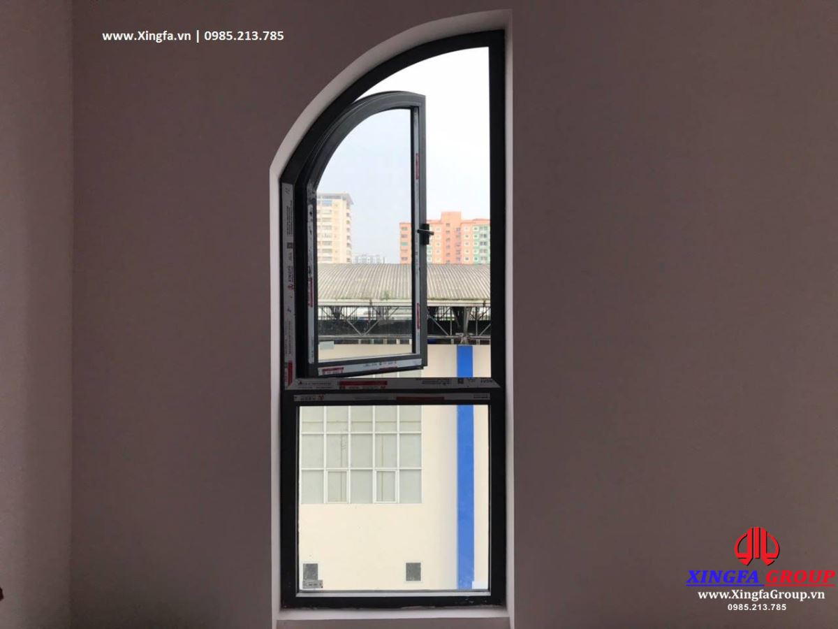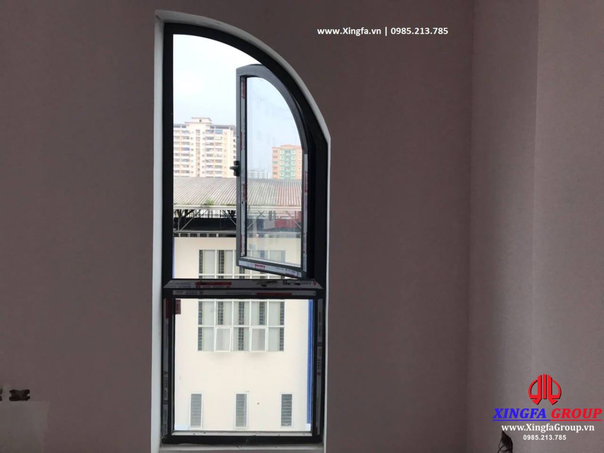 Cửa sổ nhôm Xingfa uốn vòm theo ô chờ