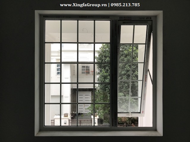 Mẫu cửa sổ mở hất 2 cánh nhôm Xingfa dùng kính hộp cách âm cách nhiệt