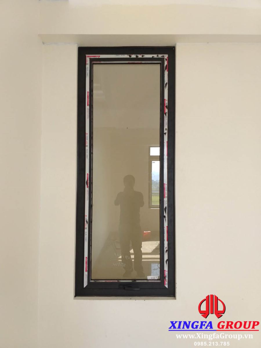 Cửa sổ mở hất 1 cánh nhôm Xingfa màu nâu