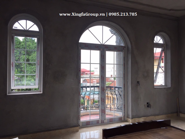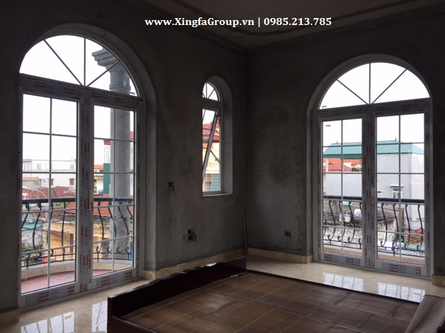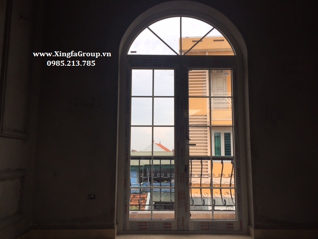 Mẫu cửa đi mở quay nhôm Xingfa uốn mái vòm cong bên trên cổ điển