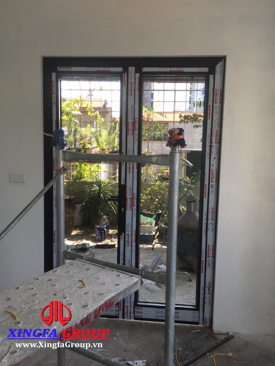 Cửa đi mở quay 2 cánh nhôm Xingfa màu đen tuyền