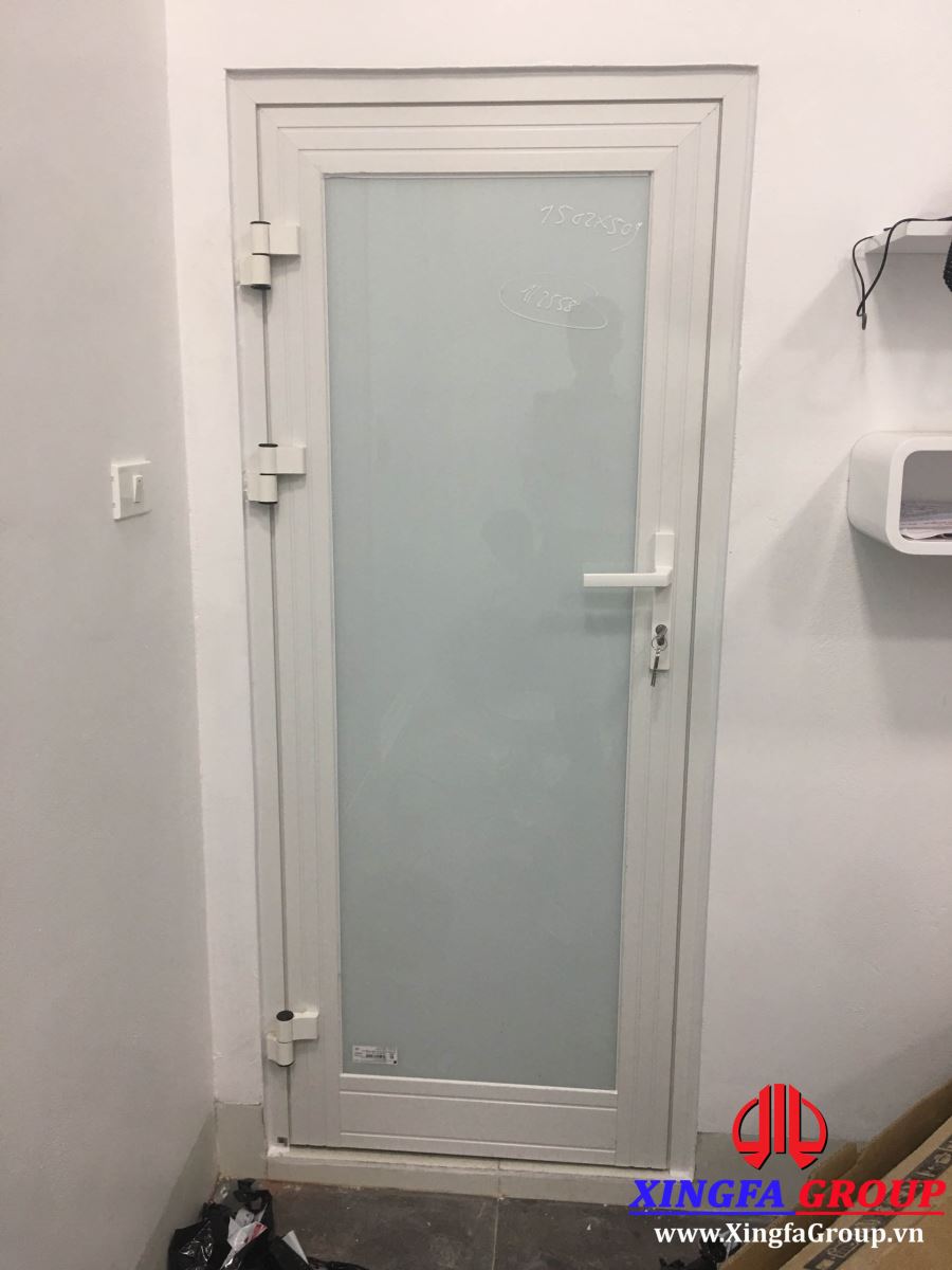 Cửa đi thông phòng nhôm Xingfa sử dụng kính màu trắng sữa