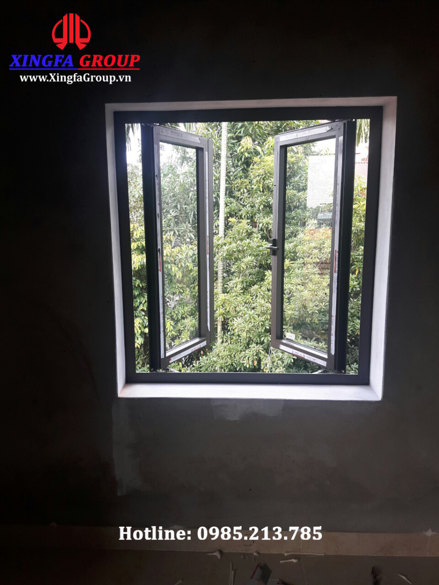 Mẫu cửa sổ mở quay 2 cánh được lắp ráp từ thanh profile nhôm Xingfa hệ 55 dầy 1.4mm