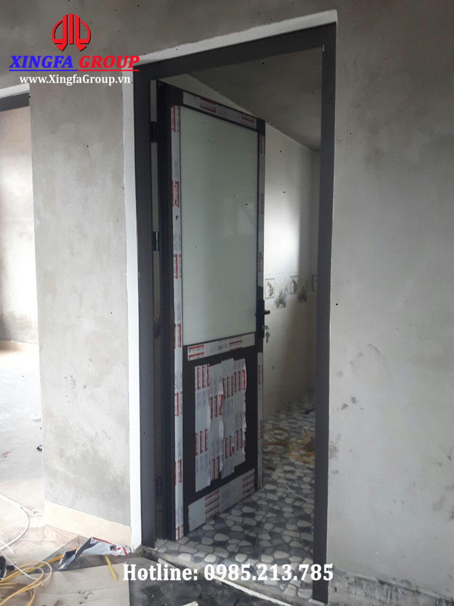 Hình ảnh mẫu cửa đi thông phòng mở quay 1 cánh được lắp ghép bằng nhôm Xingfa nhập khẩu chính hãng hệ 55 dầy 2.0mm