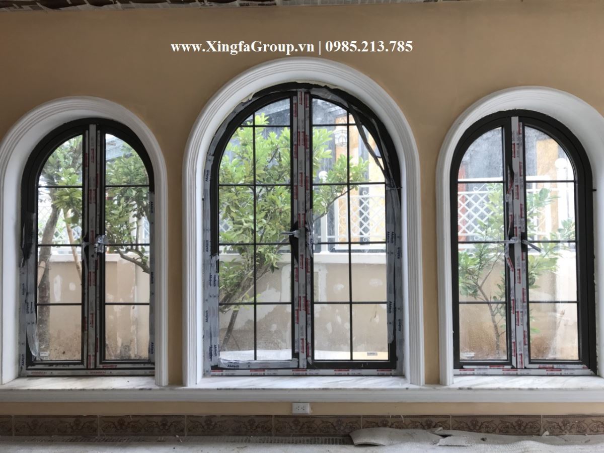 Cửa sổ mở quay 2 cánh uốn vòm bằng nhôm Xingfa nhập khẩu