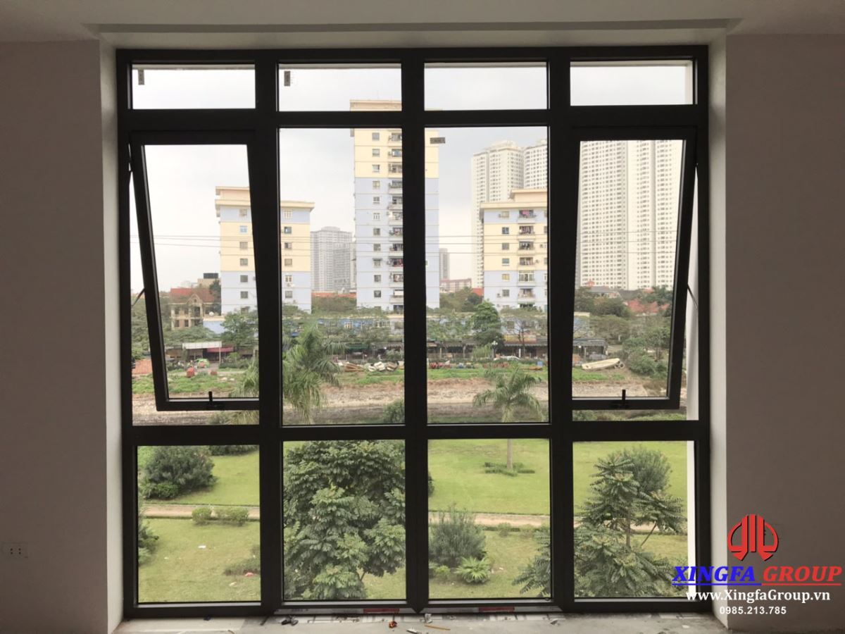 Vách kính kết hợp với cửa sổ mở hất nhôm Xingfa