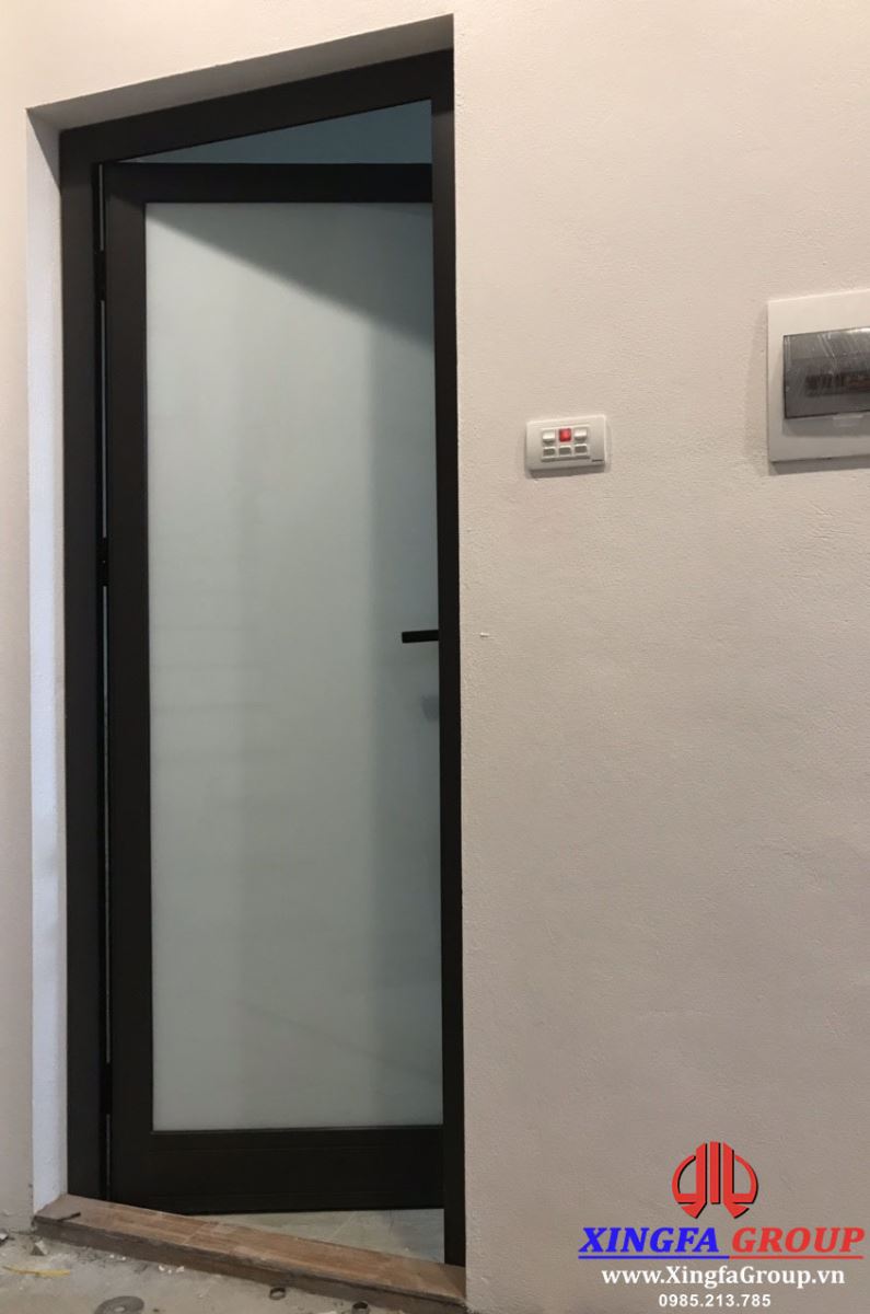 Cửa đi mở quay 1 cánh cho WC sử dụng kính màu trắng sữa