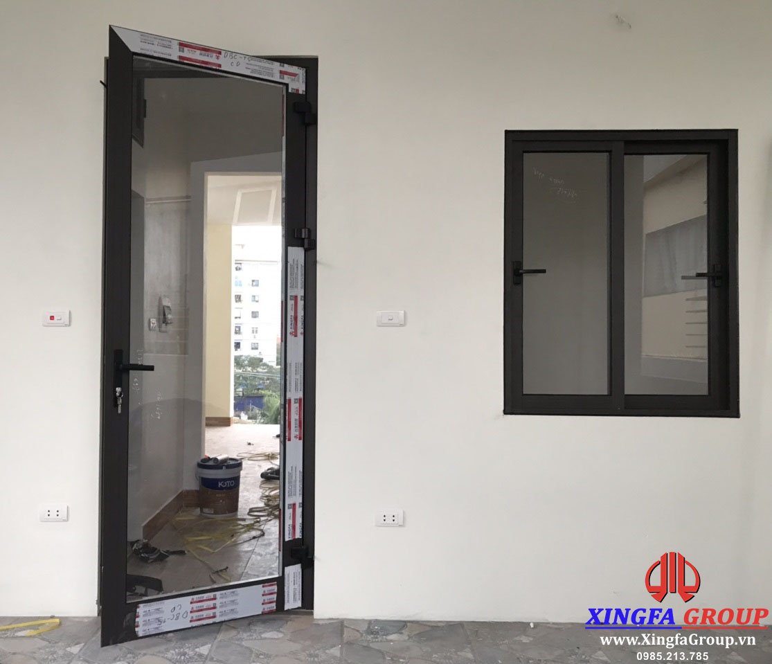 Cửa đi nhôm Xingfa ra ban công với gờ chắn nước