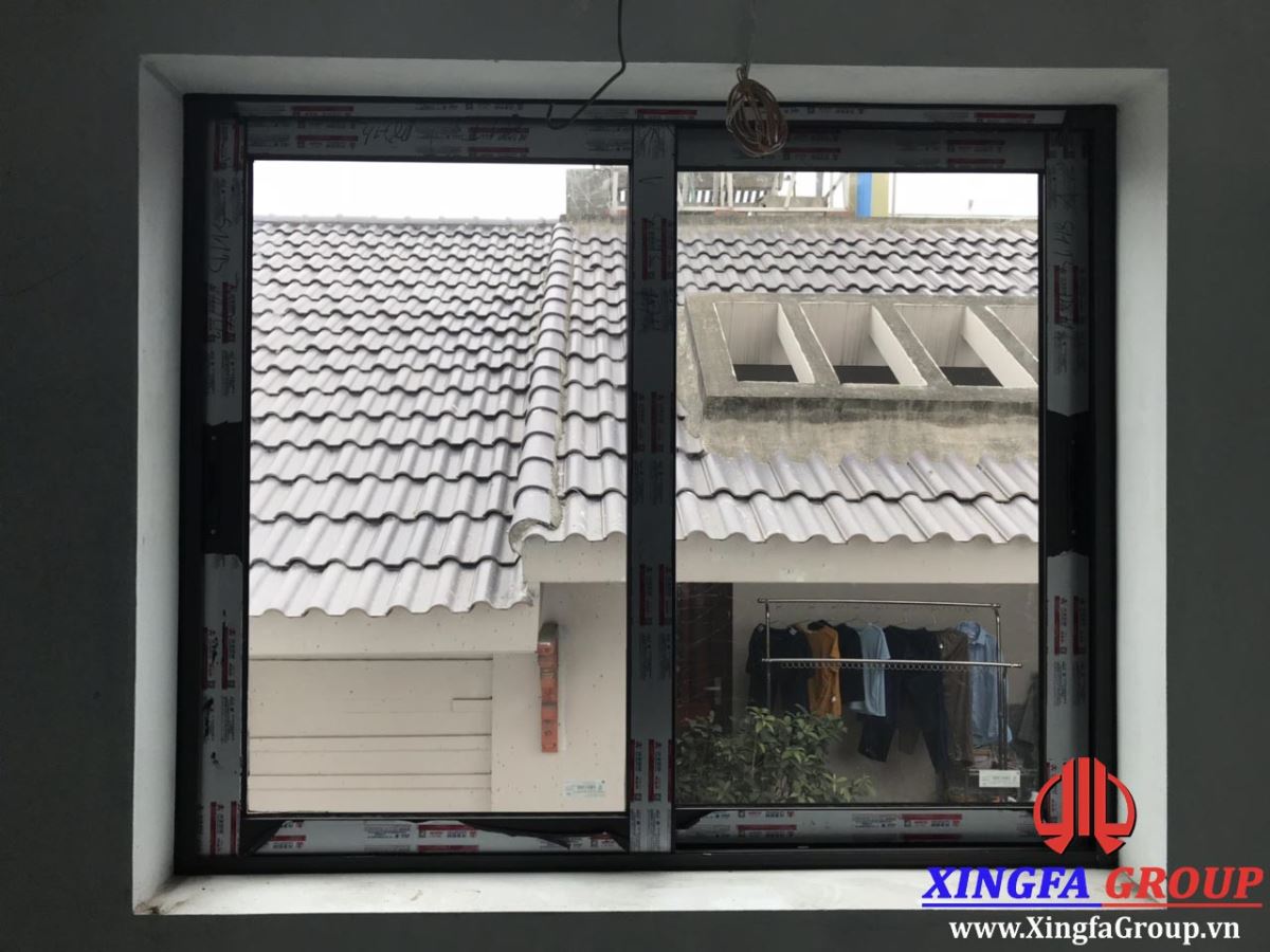 Cửa sổ trượt nhôm Xingfa tại mặt sau tầng 4