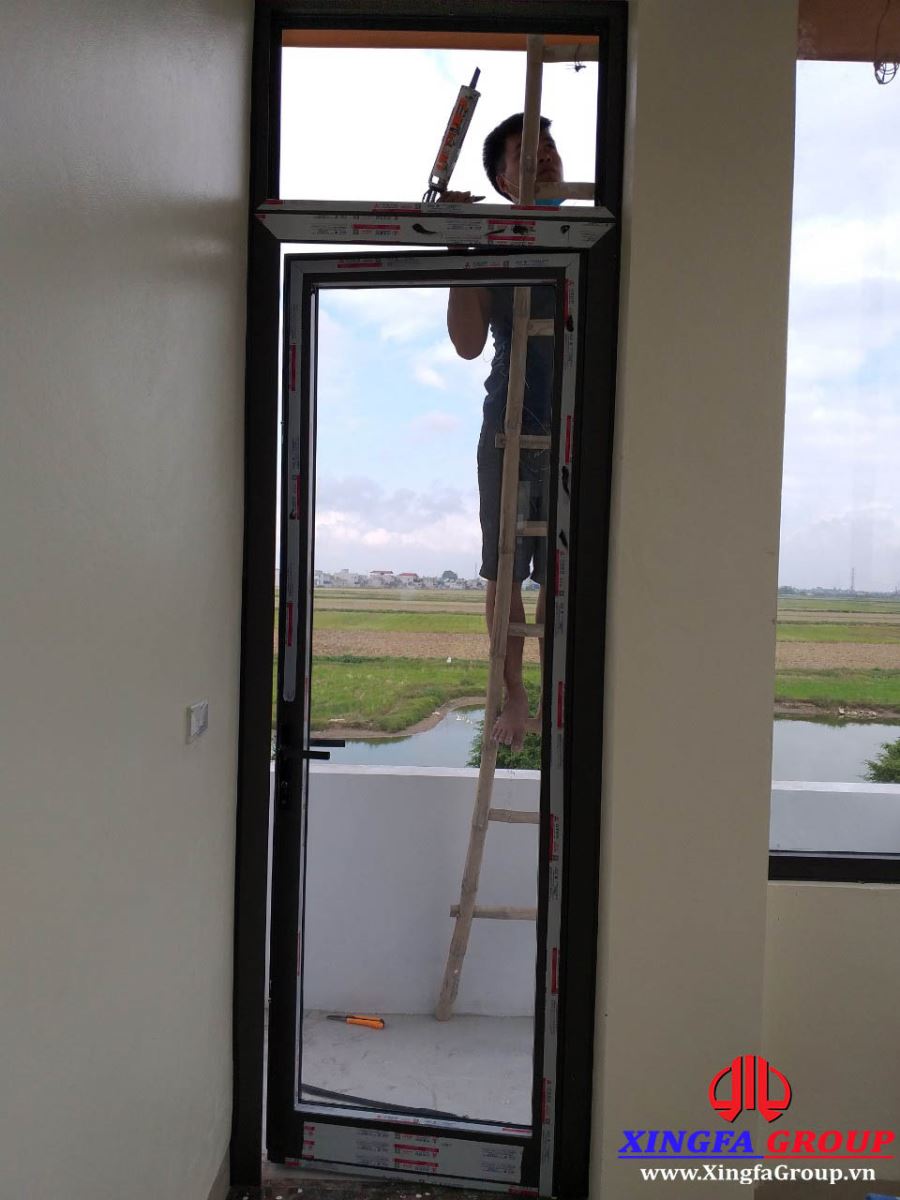 Nhân viên của Xingfa Group đang hoàn thiện lắp đặt bộ cửa đi nhôm Xìngfa