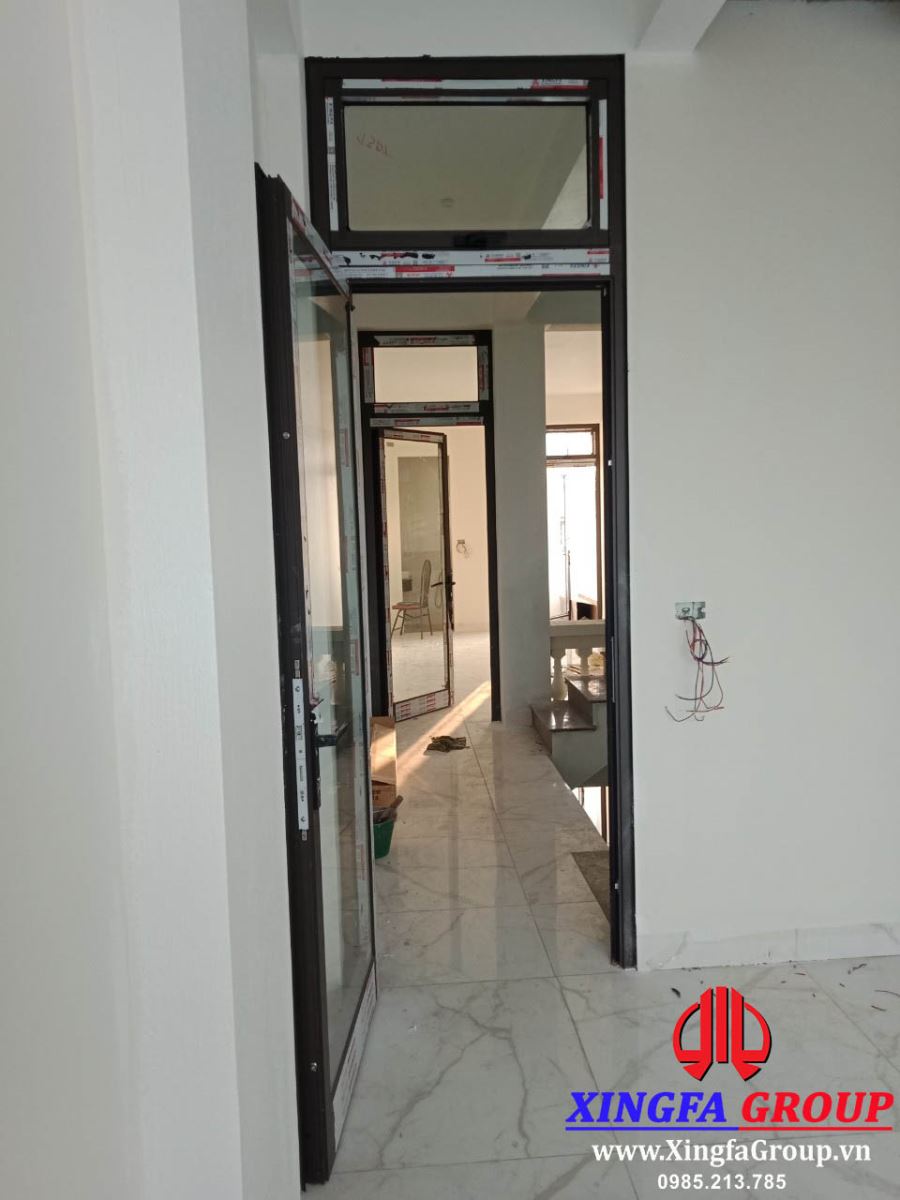 Tất cả các bộ cửa bao gồm cửa mặt tiền, cửa đi thông phòng, cửa sổ mở hất lấy thoáng ... tại nhà anh Lâm đều là cửa nhôm Xingfa nhập khẩu. Cửa nhôm Xingfa có phần khung cánh cấu tạo từ thanh nhôm nhập khẩu từ nhà máy nhôm Xingfa tại Quảng Đông. Trên thân nhôm được dán loại tem đỏ đặc trưng nhận diện nhôm Xingfa chính hãng, kèm theo mã QR để truy xuất nguồn gốc, ngày giờ sản xuất. Bề mặt ngoài nhôm Xingfa được sơn tĩnh điện theo tiêu chuẩn quốc tế. Nước sơn có độ bền màu cao, có khả năng chịu được các môi trường khí hậu khắc nghiệt nhất.