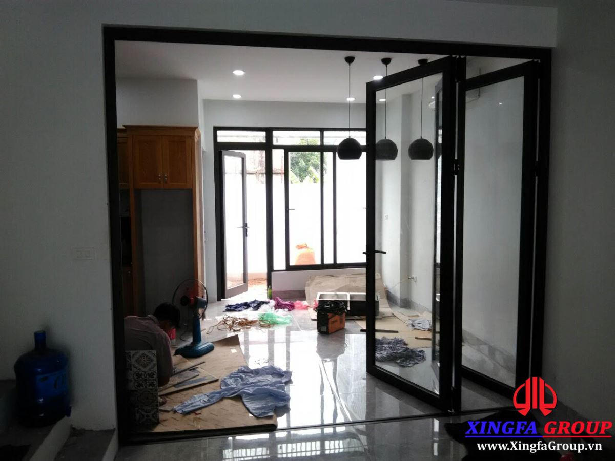 Cửa đi mở xếp trượt gấp nhôm Xingfa hệ 55