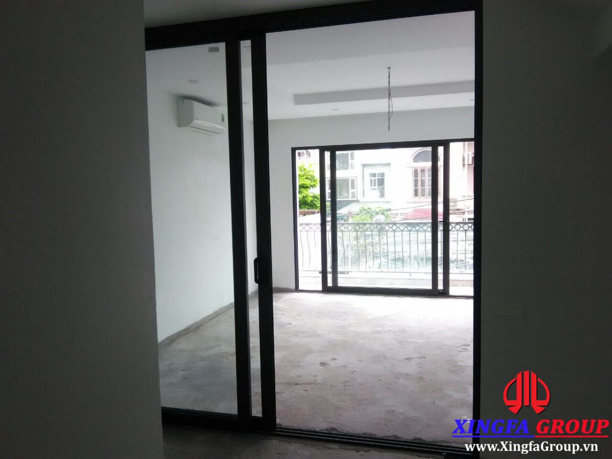 Cửa đi mở trượt 2 cánh nhôm Xingfa vào phòng khách