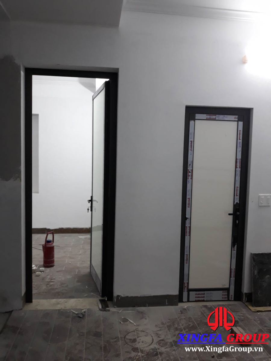 Cửa đi thông phòng nhôm Xingfa với kính trắng sữa