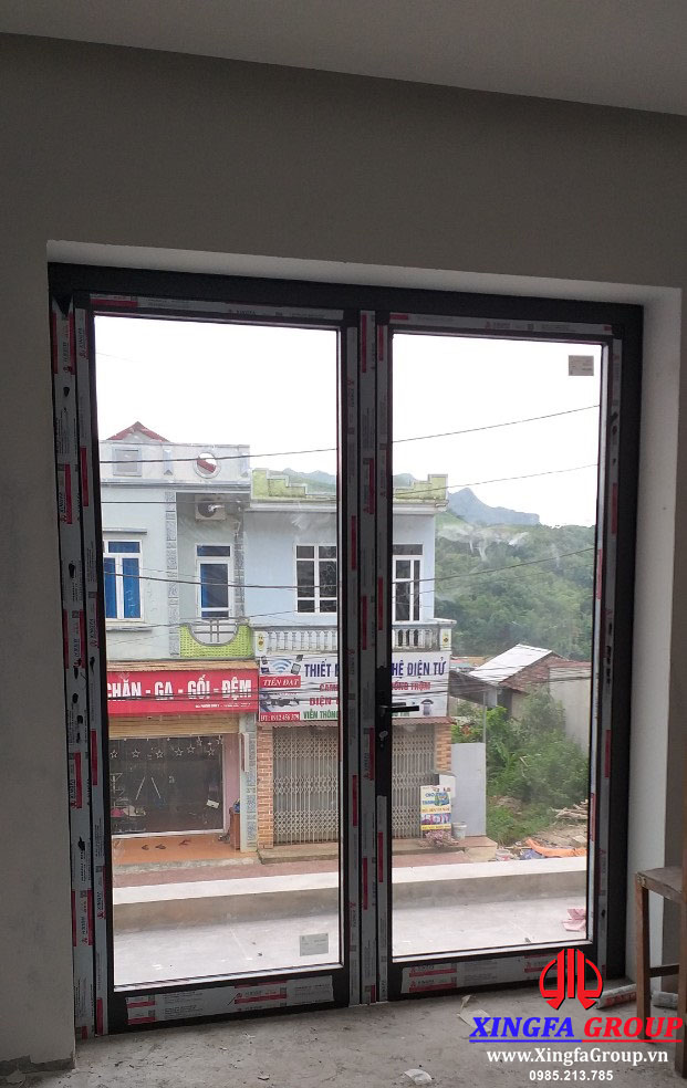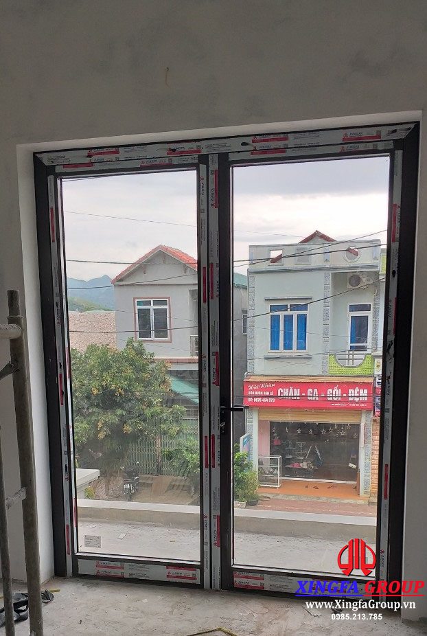 Cửa đi mở quay 2 cánh nhôm Xingfa ra ban công