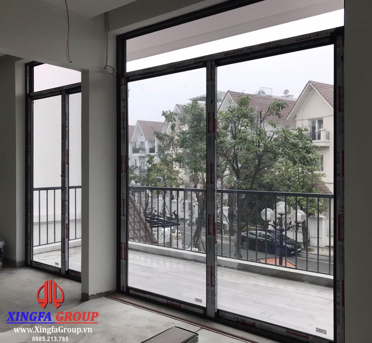 Cận cảnh các bộ cửa nhôm Xingfa trên tầng 2 và tầng 3