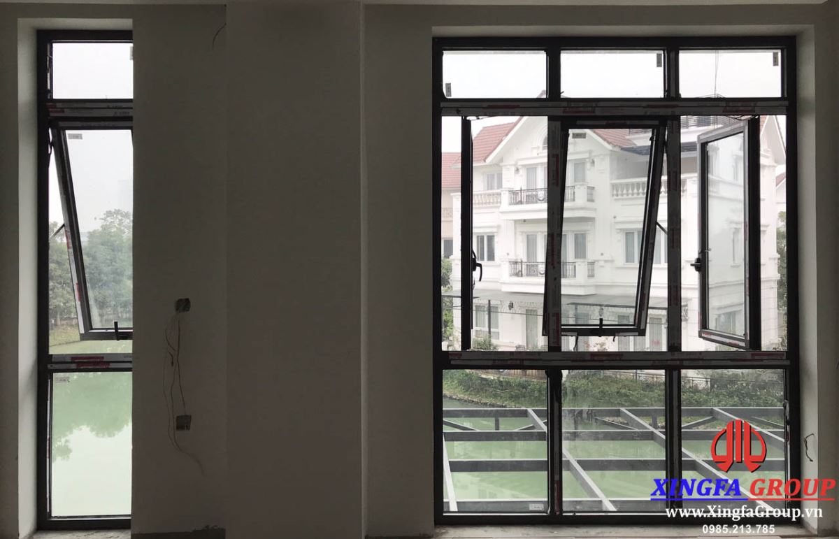 Vách kính kết hợp với cửa sổ mở quay và mở hất nhôm Xingfa