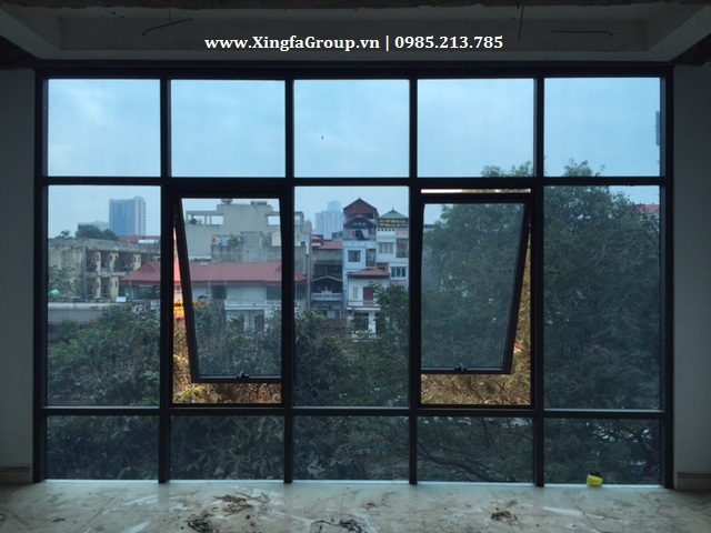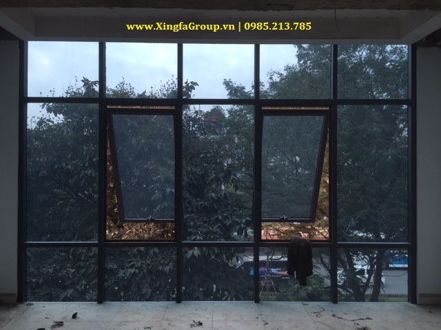 Mẫu vách mặt dựng thiết kế cửa sổ mở hất nhôm Xingfa hệ 65