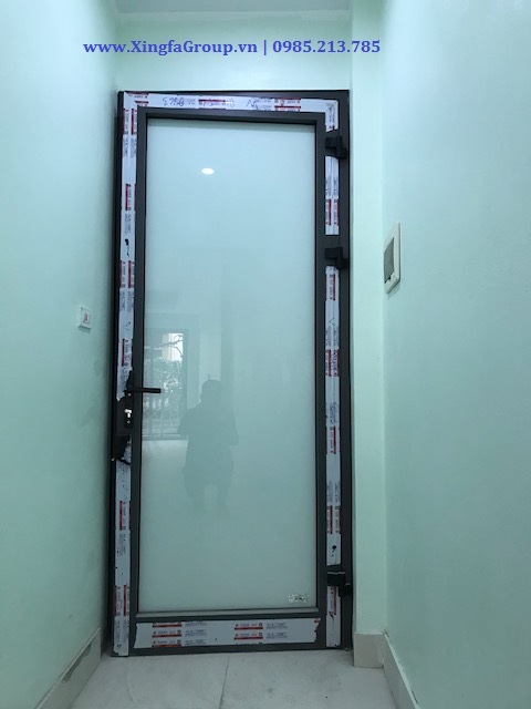 Mẫu cửa đi thông phòng nhôm Xingfa dùng kính mờ phun sữa
