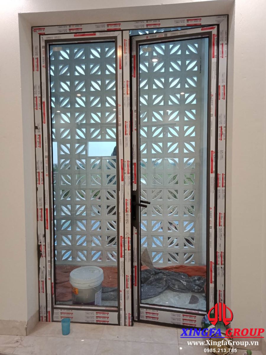 Cửa đi mở quay 2 cánh nhôm Xingfa sử dụng kính dán an toàn