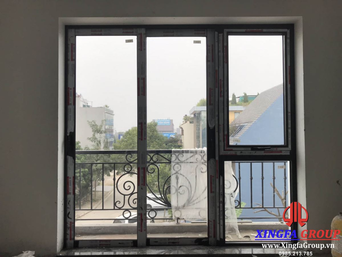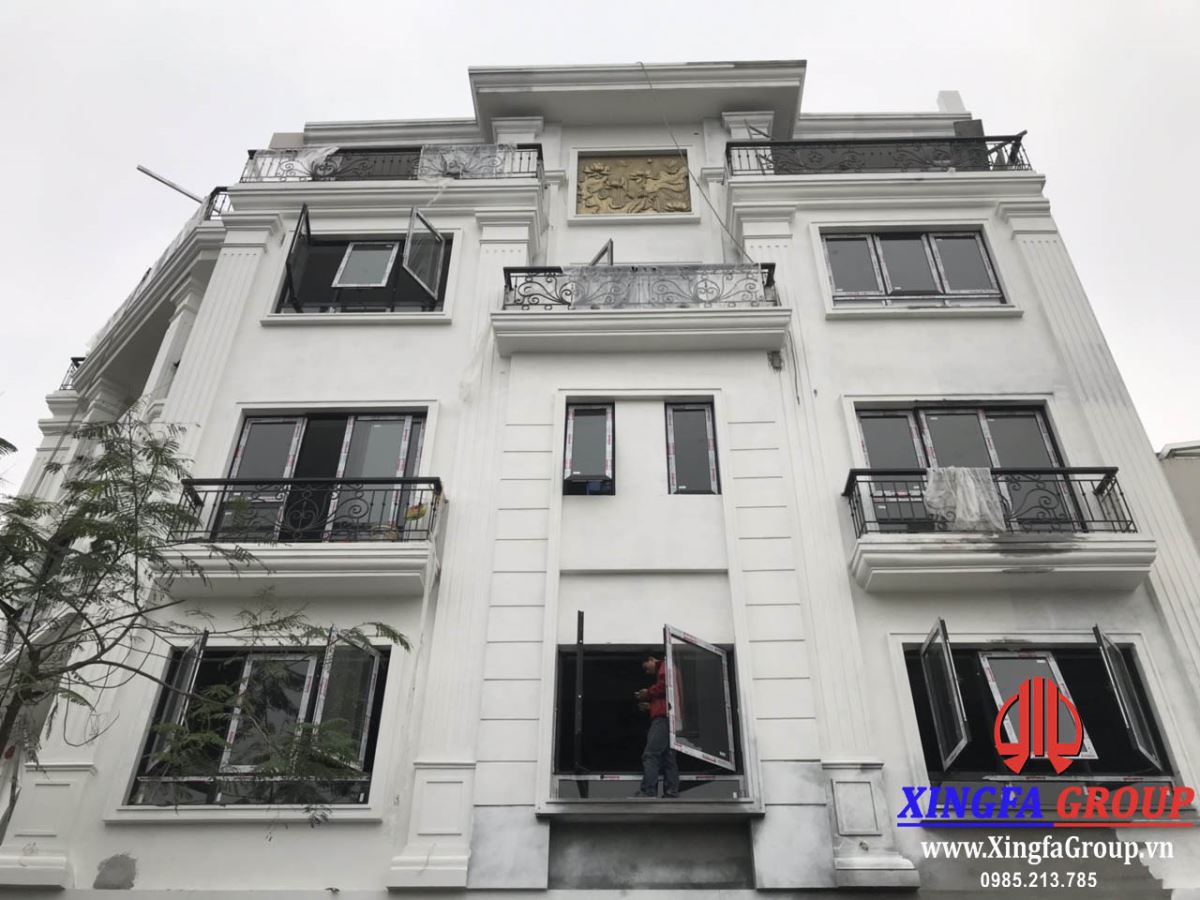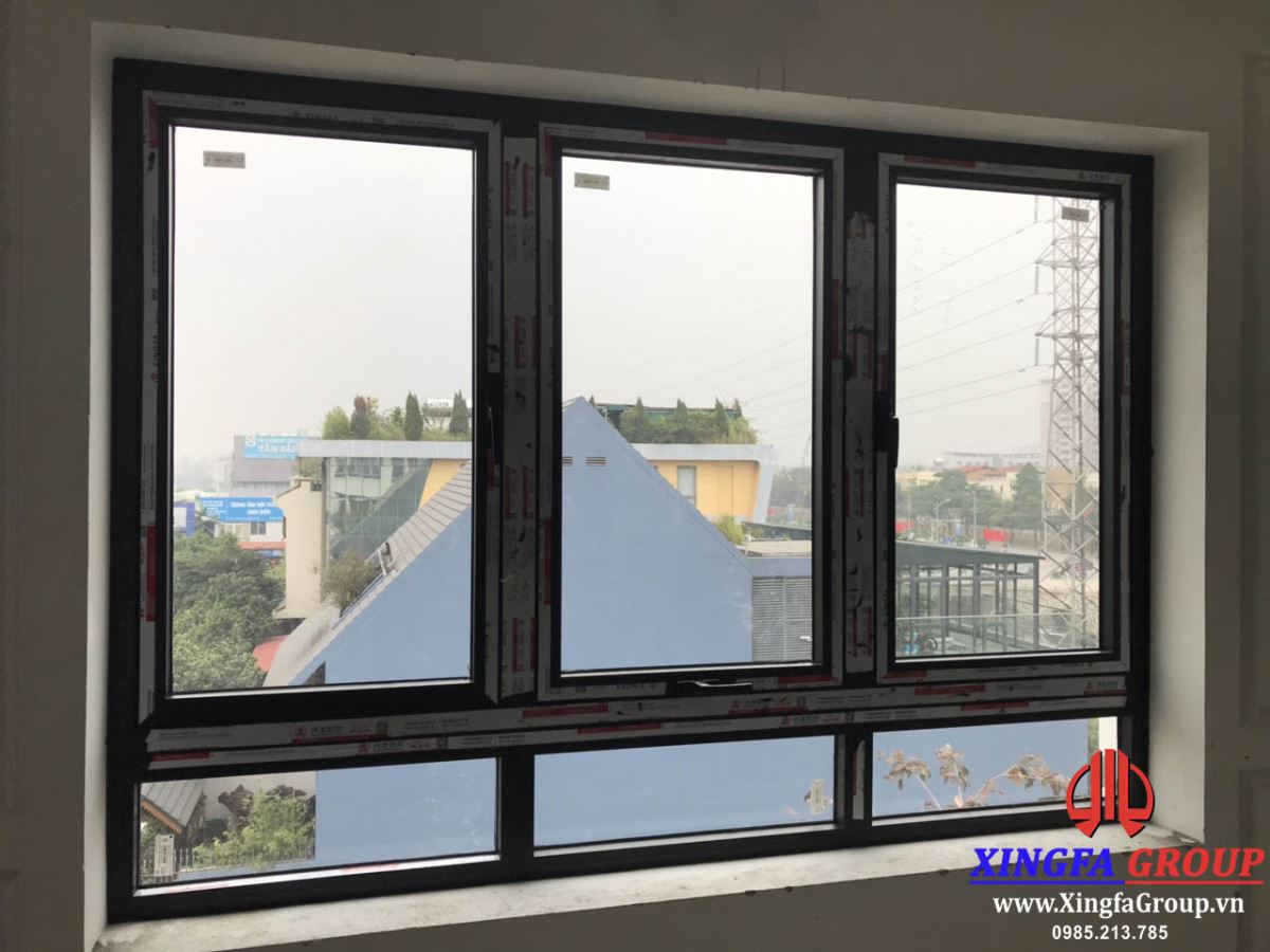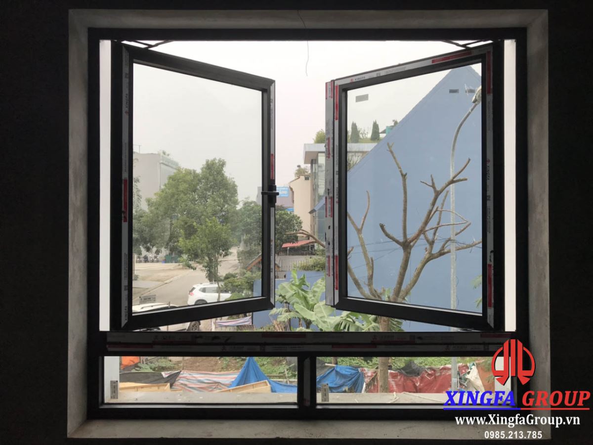 Vách kính cố định và cửa sổ mở quay đều sử dụng thanh nhôm Xingfa hệ 55