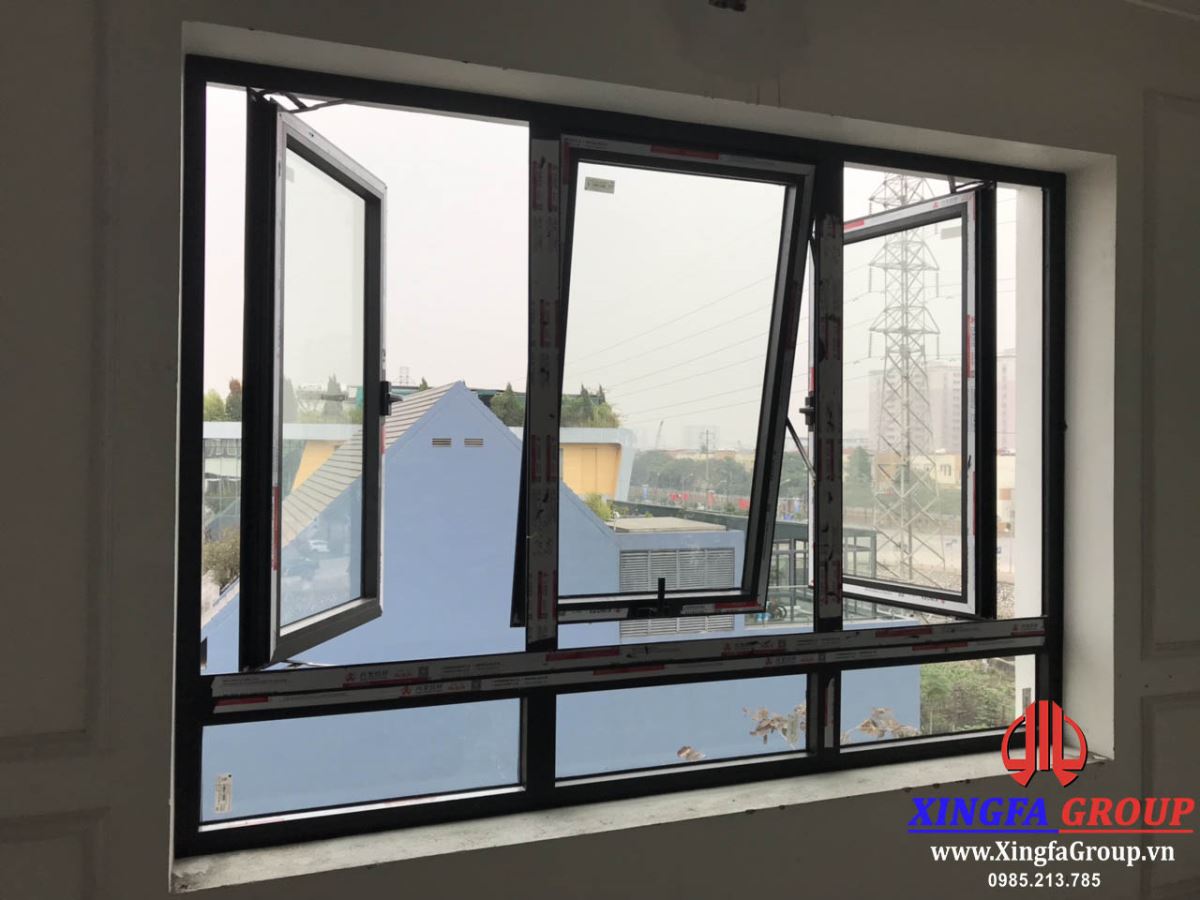 Cửa sổ mở quay kết hợp cùng với cửa sổ mở hất nhôm Xingfa