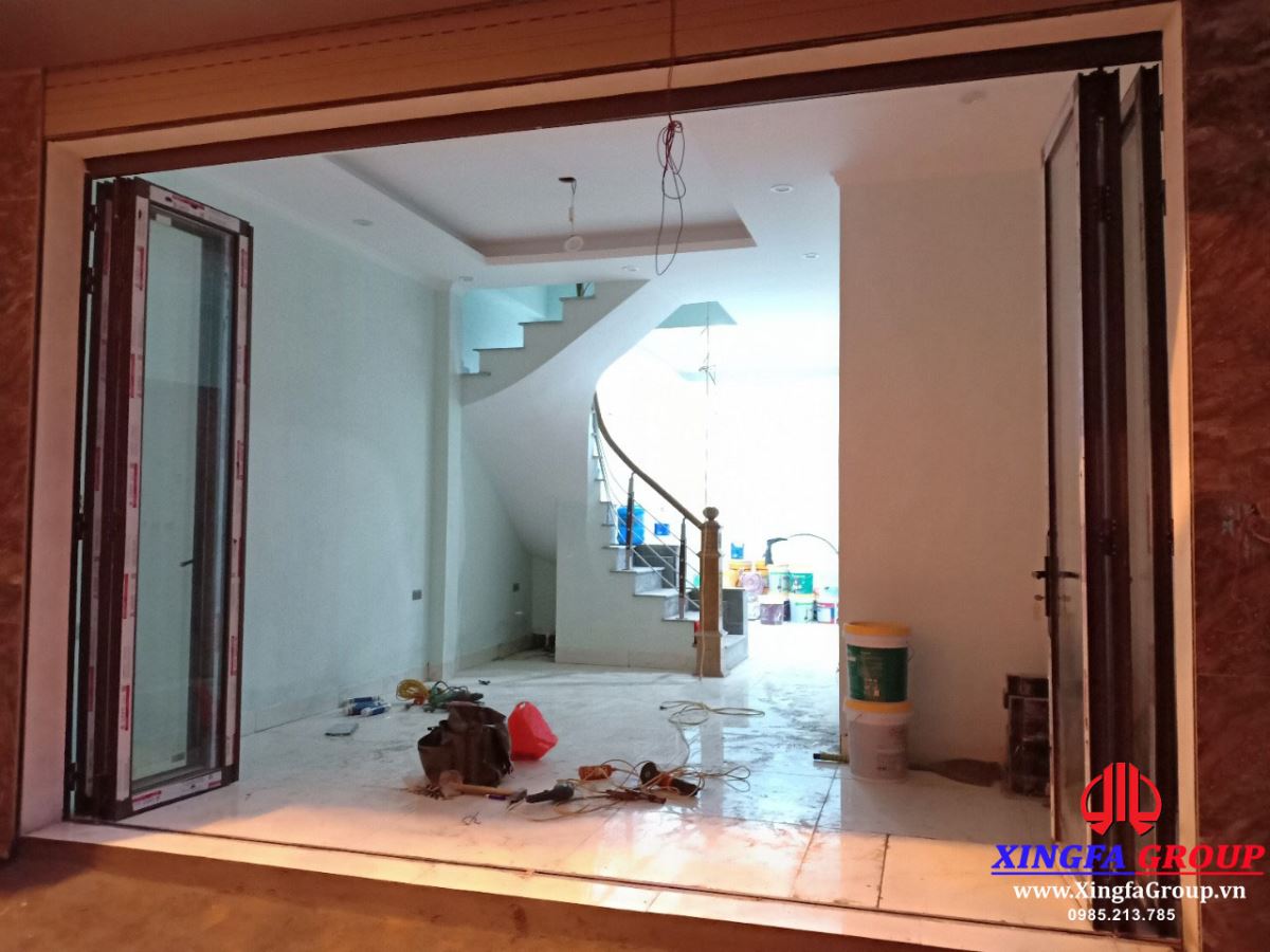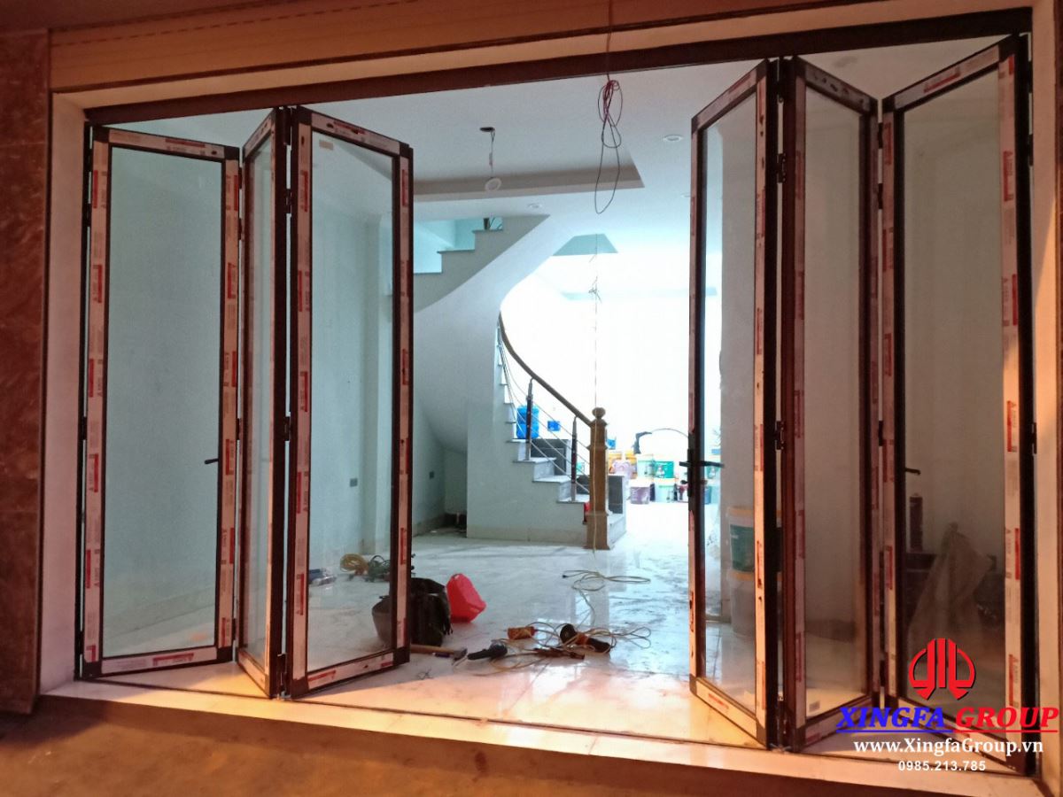 Bộ cửa đi chính mở xếp trượt gấp 6 cánh của công trình nhà chị Tuyên