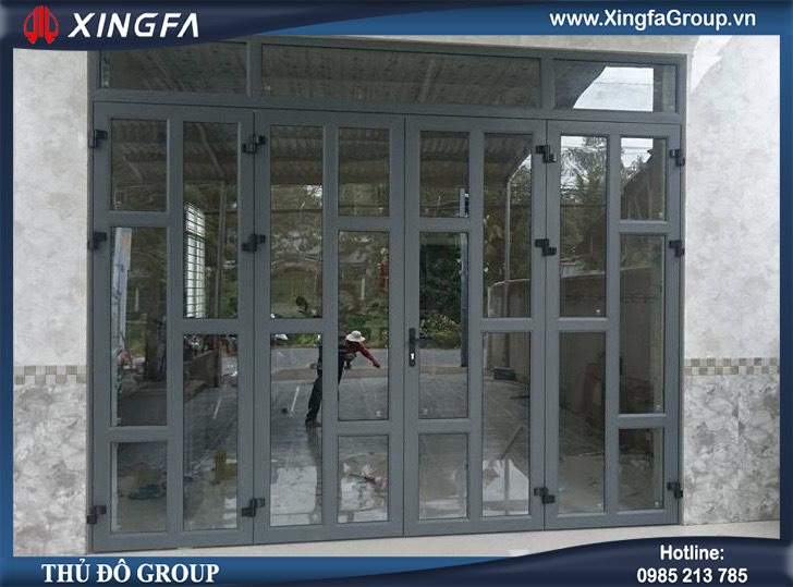 Mẫu cửa đi mở quay 4 cánh nhôm Xingfa chia ô thoáng phía trên