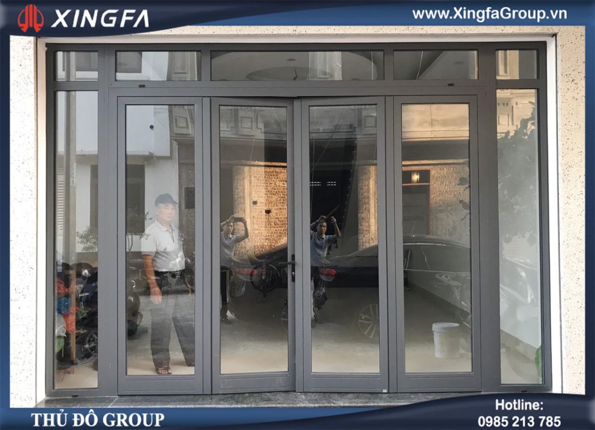 Thi công lắp đặt công trình sử dụng cửa nhôm Xingfa với mẫu cửa đi 4 cánh mở quay cho hệ cửa đi chính mặt tiền tại KĐT Định Công, Hoàng Mai, Hà Nội
