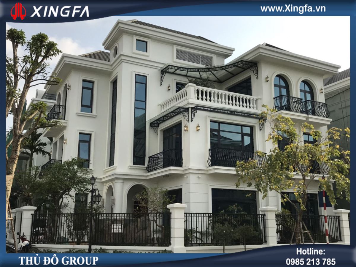 Thi công lắp đặt cửa nhôm Xingfa với mẫu cửa đi mở quay 4 cánh ở tầng 1 (cửa đi chính) tại Biệt thự liền kề Tổng cục 5 - Yên Xá, Nguyễn Xiển, Thanh Trì, Hà Nội