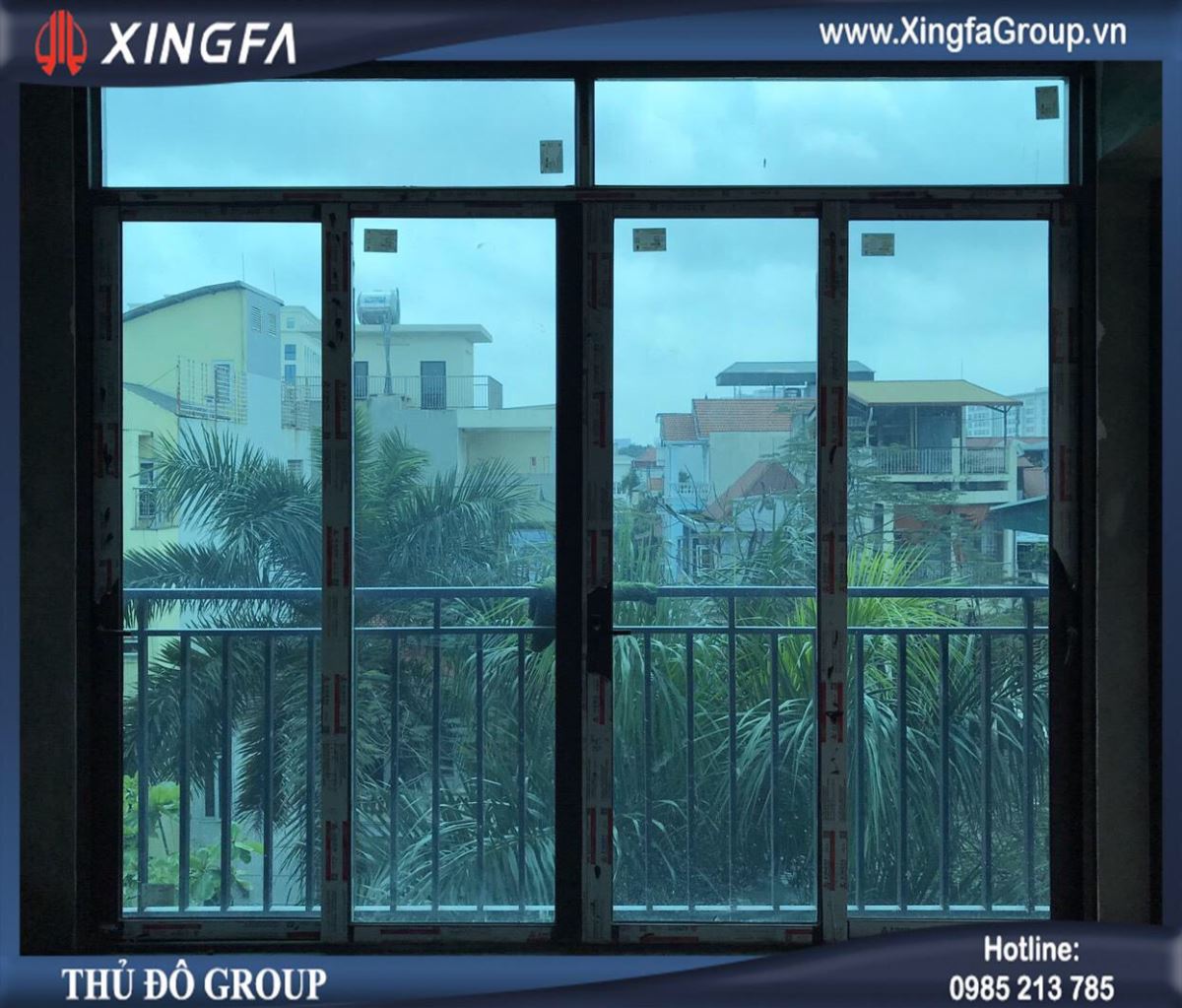 Cửa đi mở trượt 4 cánh nhôm XingfA hệ 93 BẢN NHỎ dày 2.0mm + fix cố định bên trên