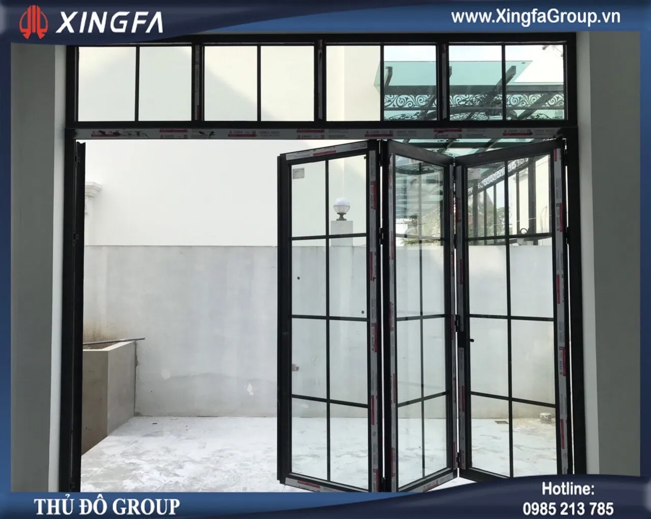 Mẫu cửa đi nhôm Xingfa mở xếp trượt gấp 3 cánh