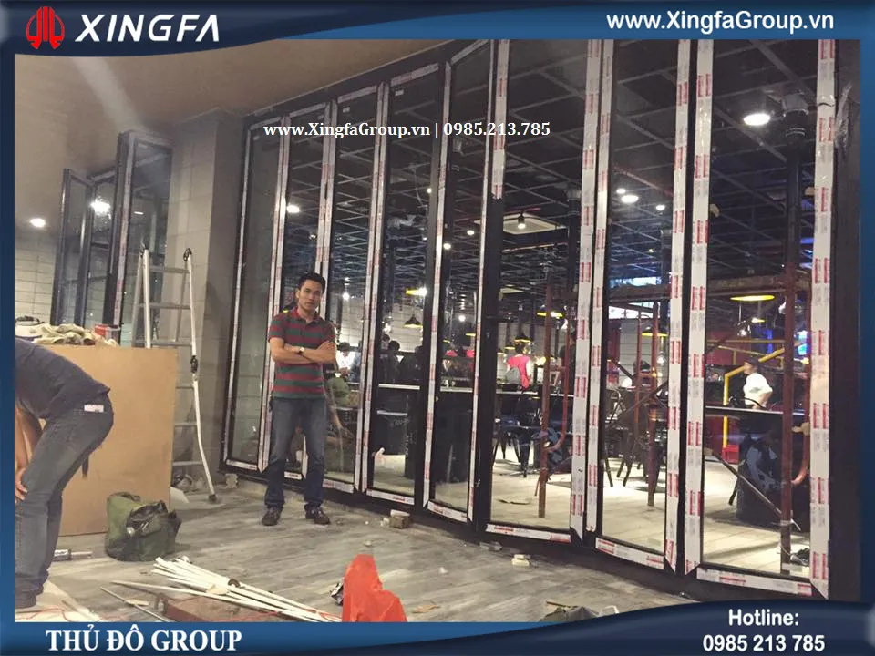 Thi công lắp đặt cửa nhôm Xingfa mở xếp trượt gấp nhiều cánh tại nhà hàng Buk Buk Mỹ Đình, Từ Liêm, Hà Nội |
