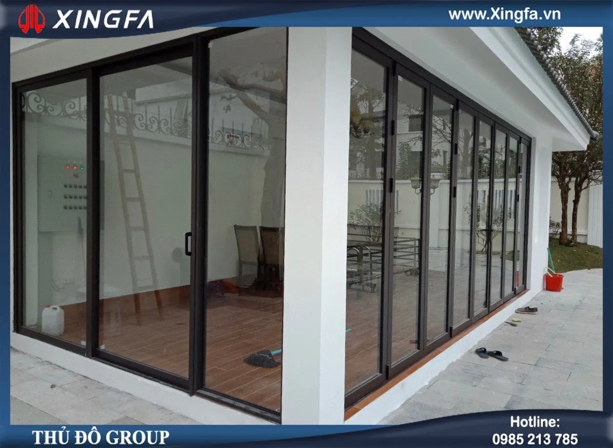 Mẫu cửa nhôm Xingfa mở xếp gấp 8 cánh