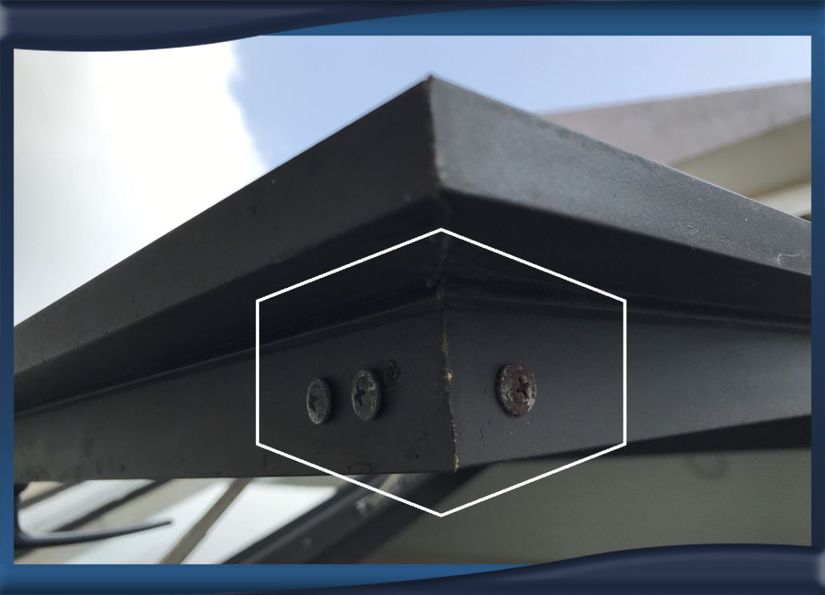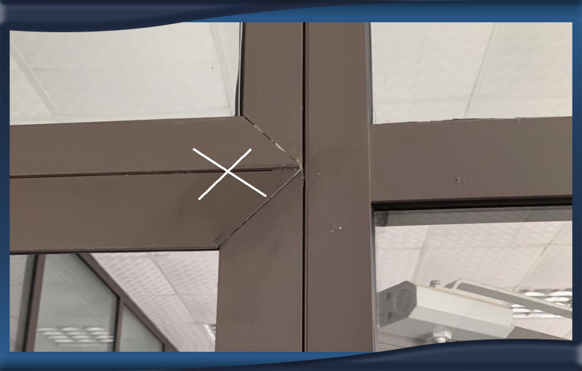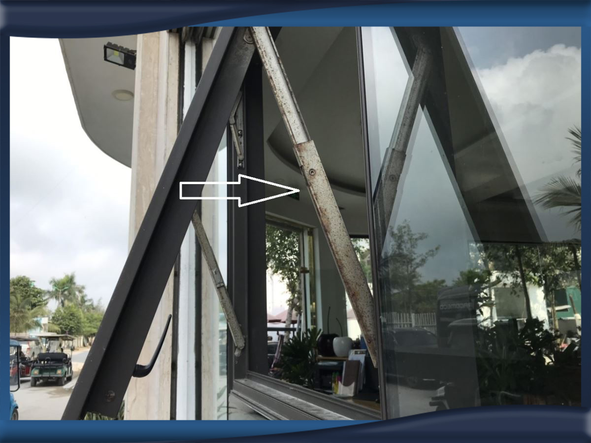 Hình ảnh cửa nhôm Xingfa giá rẻ (không ép góc) mà sử dụng bắt ốc vít bằng sắt bị hoen rỉ sét sau một khoang thời gian ngắn sử dụng của các xưởng sản xuất tư nhân