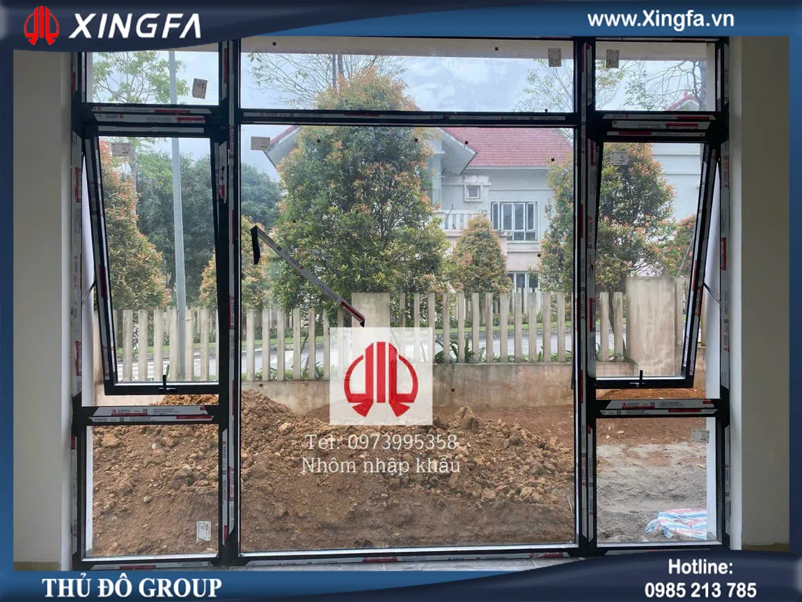 Hình ảnh mẫu cửa sổ mở hất kết hợp vách kính cố định nhôm Xingfa nhập khẩu chính hãng