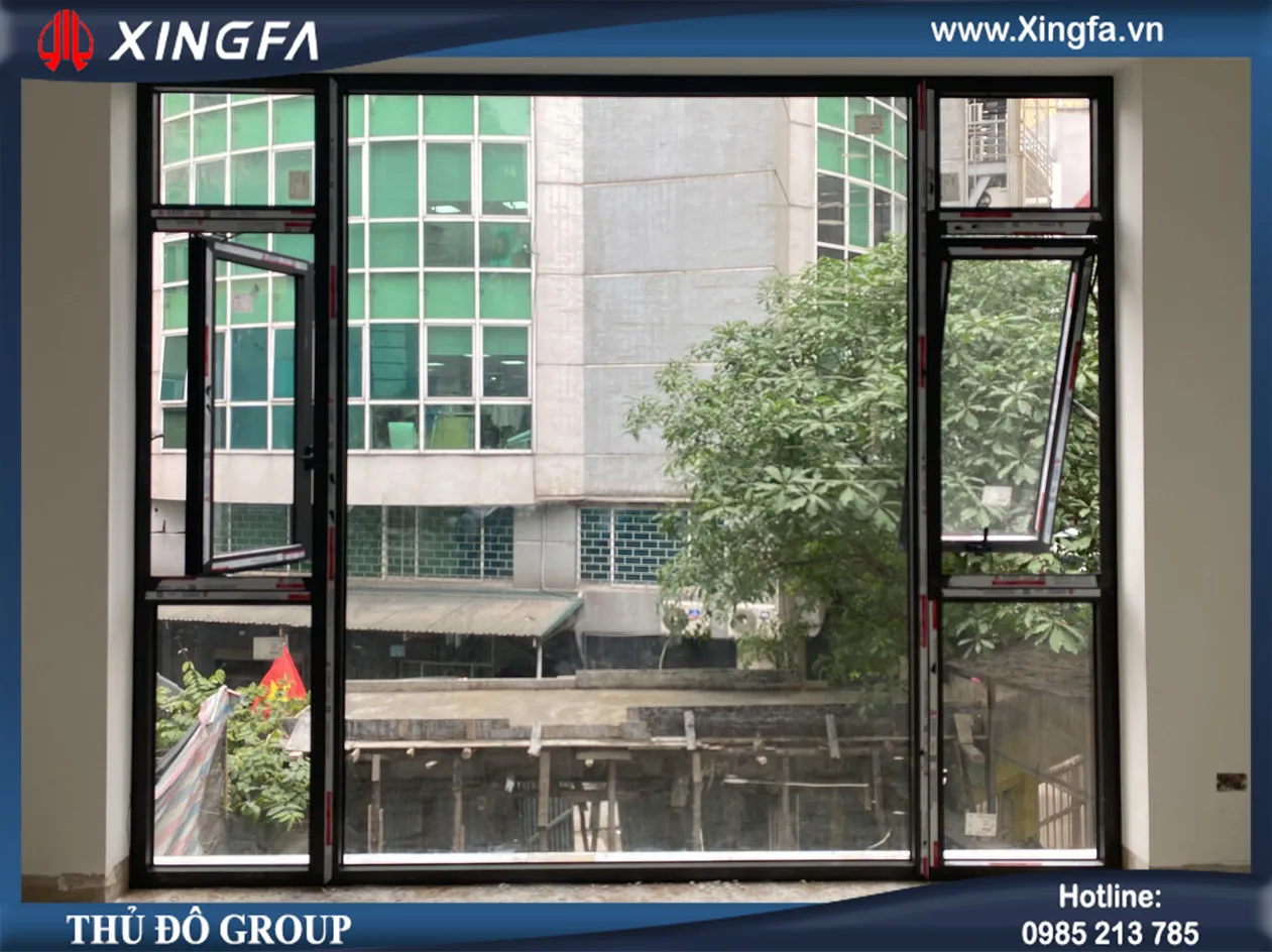 Hình ảnh cửa sổ mở hất 1 cánh kết hợp vách kính cố định nhôm Xingfa nhập khẩu chính hãng