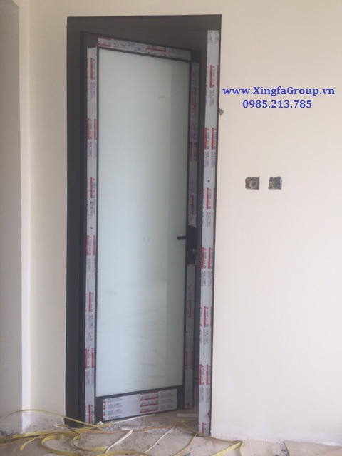 Mẫu nhom Xingfa dùng cho hệ cửa đi nhà tắm WC sử dụng kính mờ phun sữa tại công trình