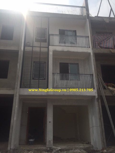 Mặt tiền đằng trước của công trình nhôm Xingfa tại Ecopark đang được bàn giao