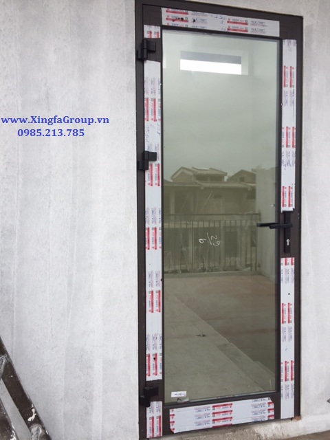 Mẫu cửa đi mở quay 1 cánh nhom Xingfa tem do dùng kính hộp cường lực cách âm cách nhiệt 5.9.5mm Temper
