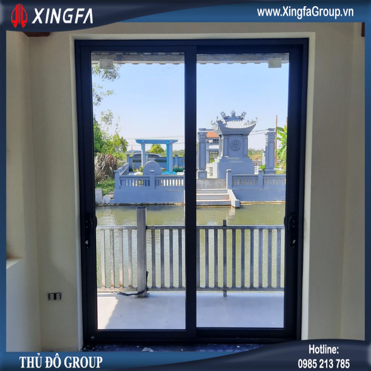 Mẫu cửa đi mở trượt 2 cánh nhôm Xingfa hệ 93 BẢN TO dày 2.0mm