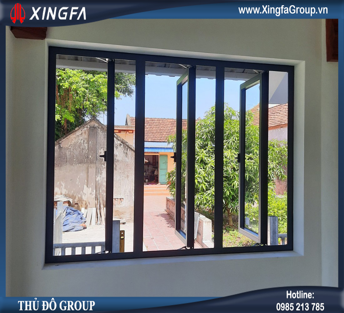 Mẫu cửa sổ nhôm Xingfa nhập khẩu chính hãng 100% tem đỏ Quảng Đông mầu ghi sẫm