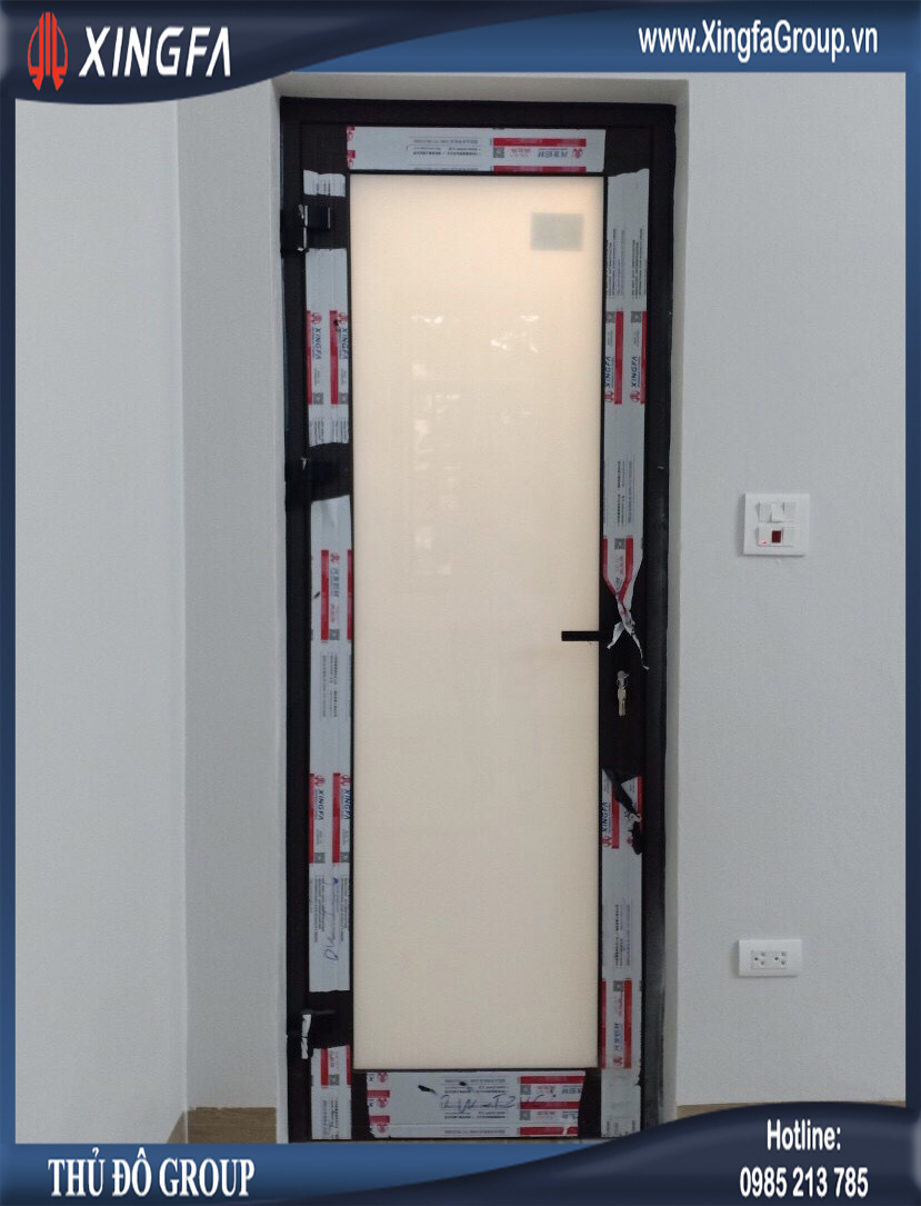 Mẫu cửa đi wc nhà tắm nhôm Xingfa hệ 55 dày 2.0mm dùng kính mờ phun sữa
