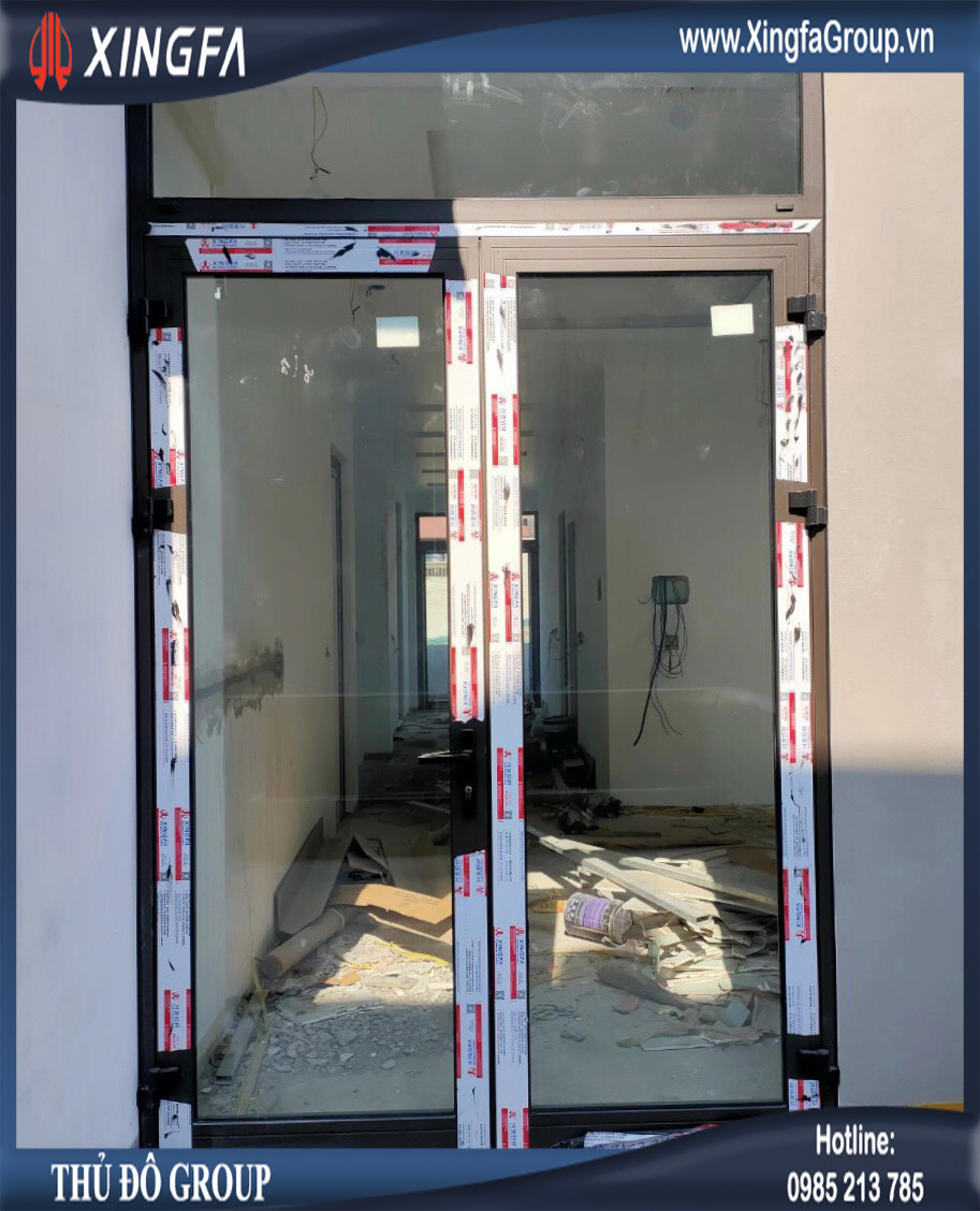 Hình ảnh cửa đi mở quay 2 cánh nhôm Xingfa nhập khẩu chính hãng
